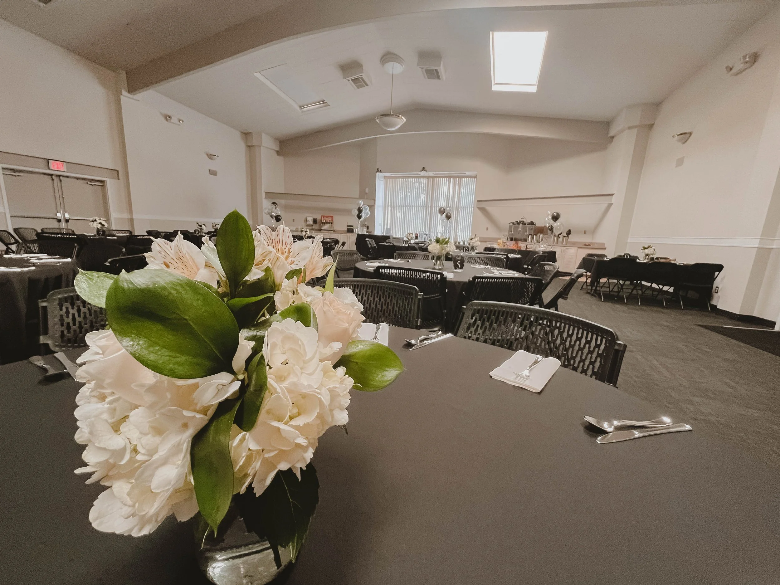 The Hall holds up to 300 guests seated in chairs, and approximately 150 people with tables and chairs. This open space is ideal for luncheons, wedding ceremonies/receptions, conferences, meetings, lectures, and so much more. An industrial kitchen is also available for an additional price, making a space available for catering.